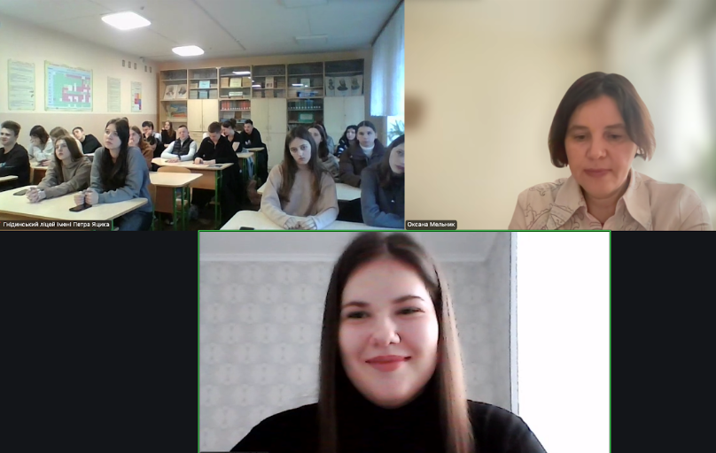 Із старшокласниками ліцею поділилася своїми враженнями про навчання та студентське життя в цьому університеті студентка ІІІ курсу Анастасія Біла, випускниця Гнідинського ліцею 2022 року.